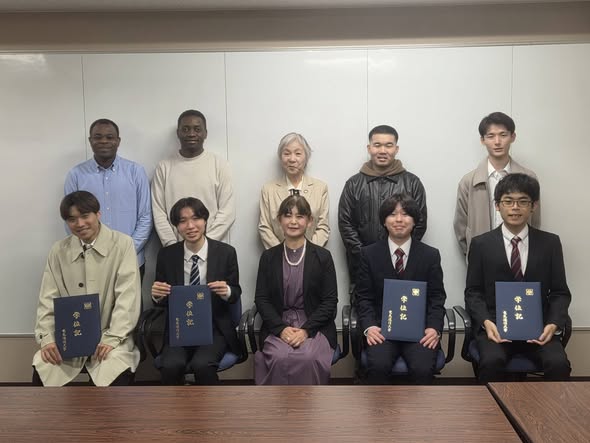 HOME > 2025年度ニュース > 2025年度ニュース 2026/03/25 2025年度卒業式・修了式(2026年3月25日) 2026/03/30 2025年度は、2名が卒業して学士(工学)、2名が修了して修士(工学)を取得しました。 皆さん、卒業・修了、おめでとうございます! また、吾妻勇太さん(M1)、 沖村岳哉さん(M1)、 葛城太貴さん(M2)、 野邉田龍将さん(M2)の4名 が学生表彰を受けました。 -2025年度ニュース Twitter Facebook Google+ Pocket B!はてブ LINE