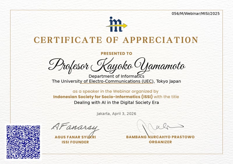 山本佳世子教授が以下の要領でオンライン開催されたIndonesia Socio-Informatics Society (ISIS)で招待講演を行いました。